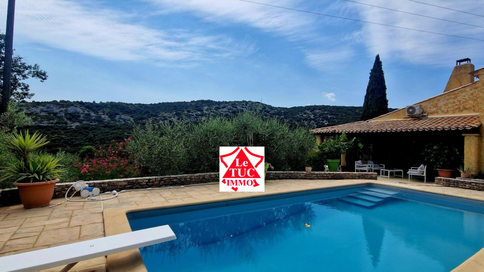 Implantée au coeur de la Garrigue, sur un grand terrain de 2630 m², cette villa vous offrira une vue imprenable sur le village d'Aiguèze, les Gorges de l'Ardèche et la Nature.