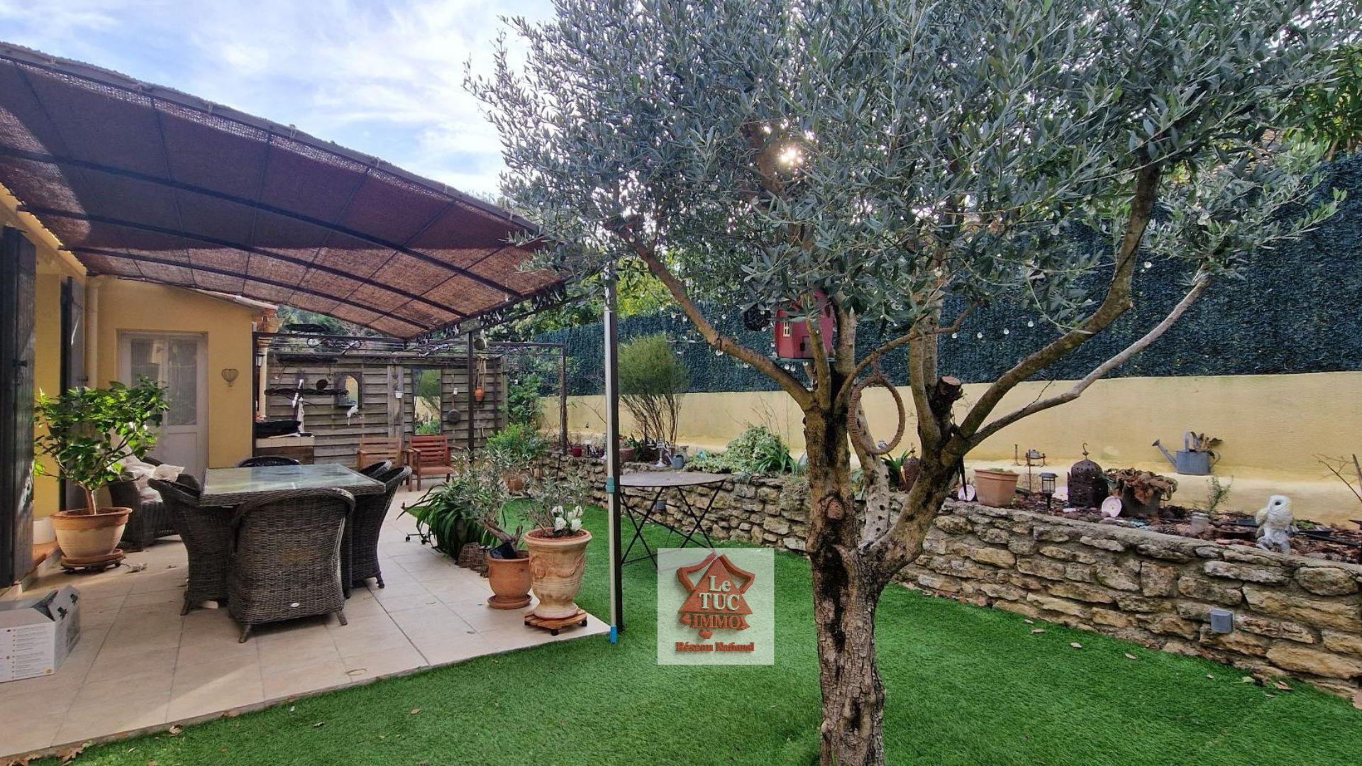 A l'extérieur le charme opère tout autant : un jardin joliment aménagé, facile à entretenir, une belle terrasse carrelée avec pergola et un coin piscine 3x4 qui vient parfaire cet espace intime et apaisant.